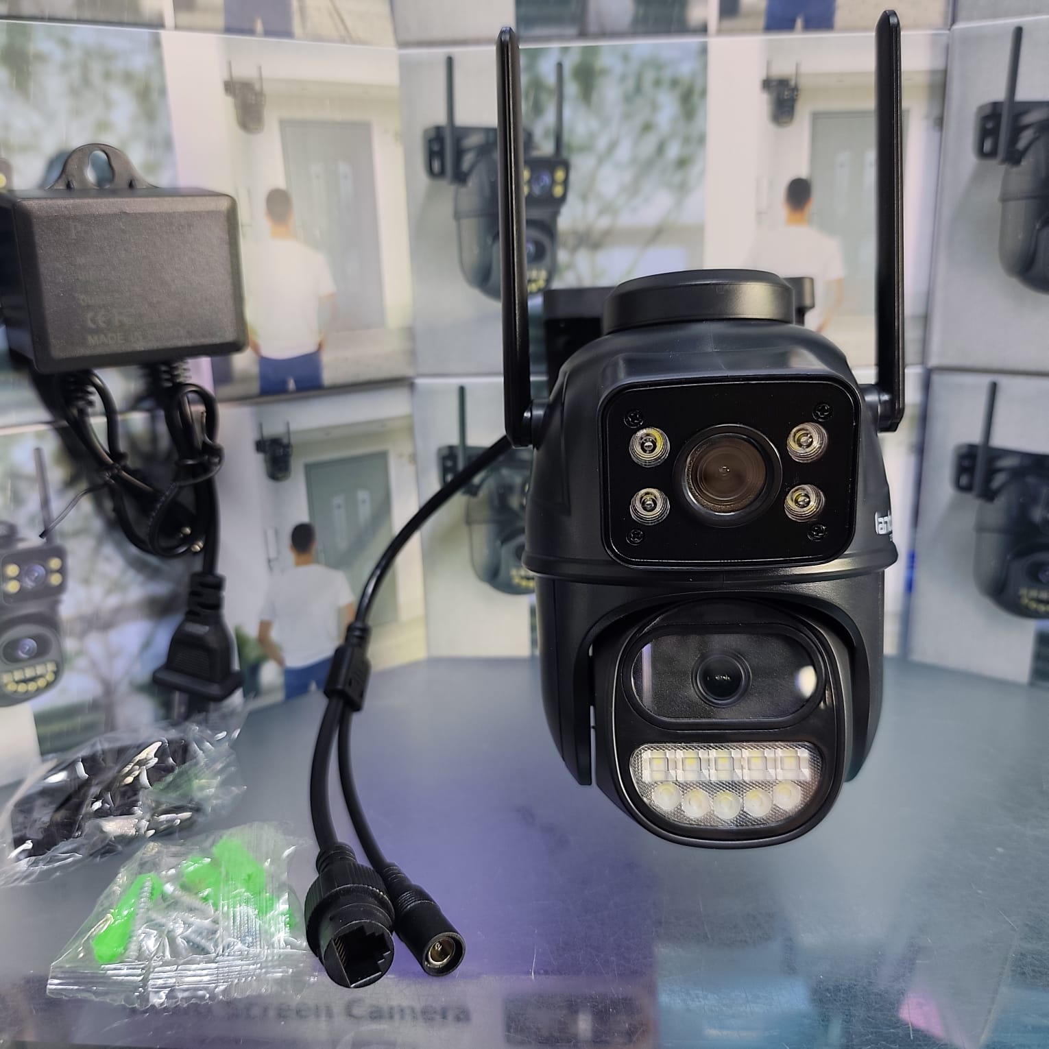 Resolución: QHD | Megapíxeles: 6MP (3MP+3MP) | App: ICSEE | Lentes: 2 (1 rotatorio 360°, 1 fijo) | Visión nocturna: infrarroja | Protección: IP66 | Alarma programable